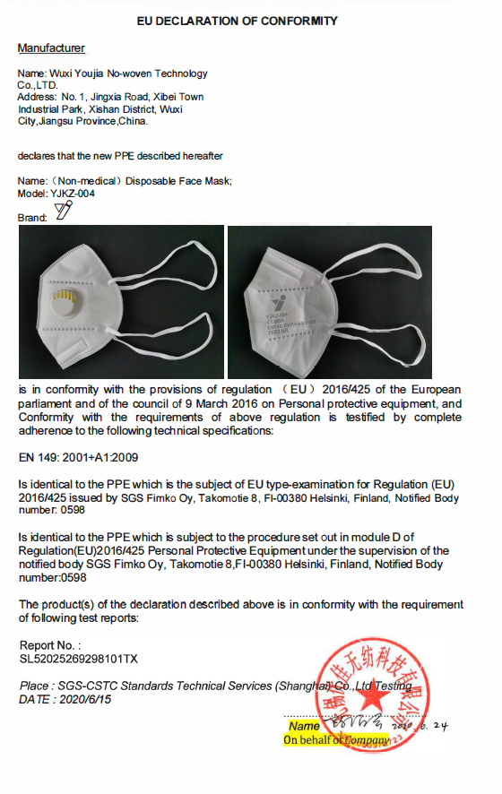 【Compliance】This filtering half masks is designed to protect against particles, it has passed EN149:2001+A1:2009 to show conformity to the EHSR of Regulation (EU) 2016/425.